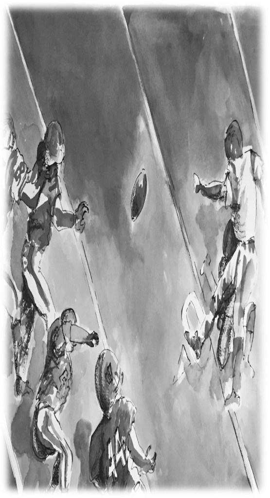 in bold strokes of faded blue